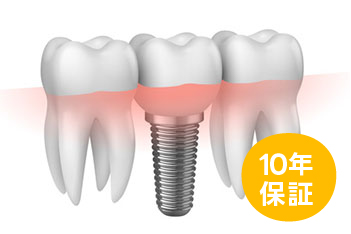 インプラントとは、天然の歯とほとんど変わらない機能と外観を持った第三の歯です。外科手術が必要なインプラント治療の場合、歯科医師の腕と経験値は非常に重要なポイントになります。当院の院長は、インプラント治療歴15年以上という実績を持っています。さらに10年保証で安心です。お仕事で転勤などの場合も、保証会社より他の歯科医院をご紹介できるシステムも完備。信頼できる歯科医師のもとでインプラント治療を受けたいという方は、ぜひ一度ご相談ください。