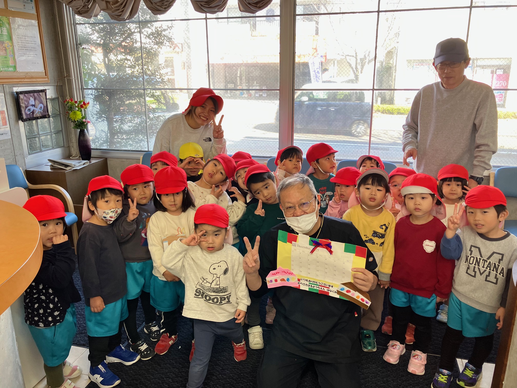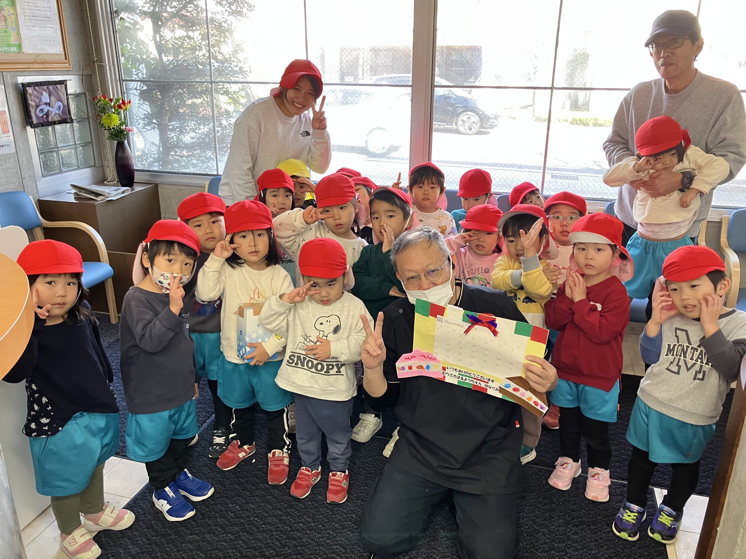 勤労感謝の日 2025.12.03 11/26(水)に紫原幼稚園からはな組さん3歳児20名と職員の方があおぞら歯科に勤労感謝のお礼にきてくださいました!! 皆さんの元気な笑顔に働く活力をもらいました☆ 最近寒くなってきて風邪やインフルエンザが流行っておりますので、 沢山食べて、歯磨きして元気にお過ごしください♬ 可愛いカレンダーをありがとうごさいます♡